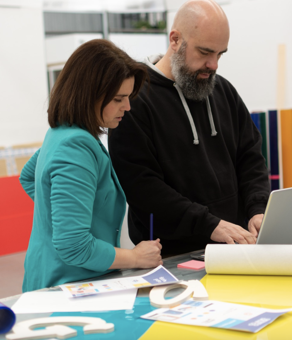 Junto a Álvaro, mi socio y compañero de vida, diseñamos y elevamos marcas en nuestro taller creativo.